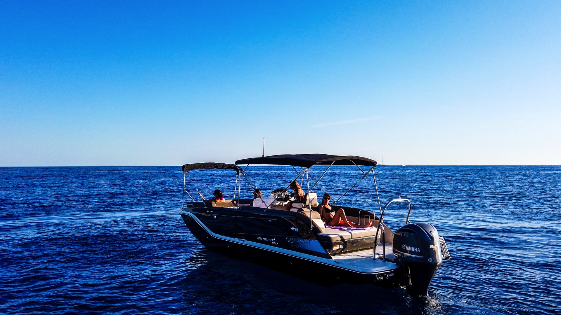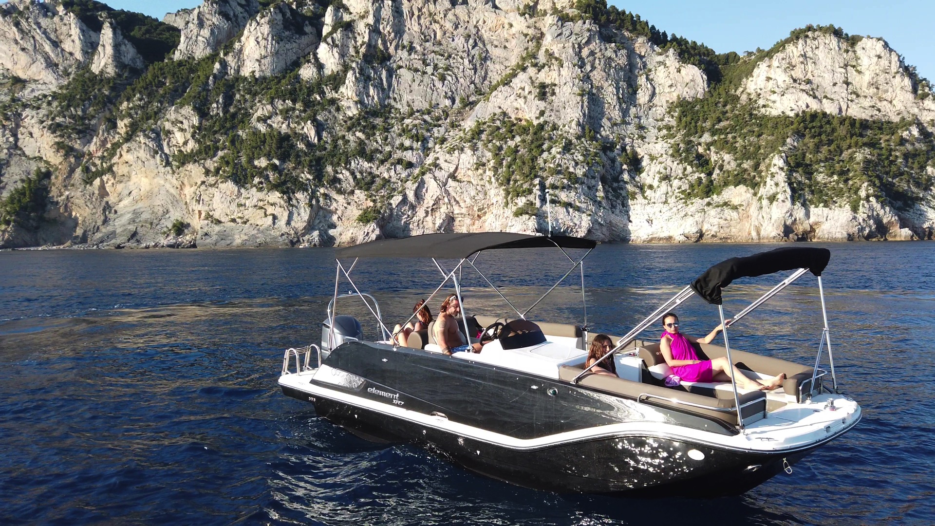 This eco-friendly boat blends the classic charm of a traditional gozzo with modern comfort, featuring a spacious open deck ideal for lounging, coastline viewing, and exploring hidden coves. With additional bench seating and a fixed sunshade, it offers a relaxed and comfortable experience on the water.